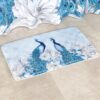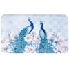 Give your bathroom a makeover with this beautiful Blue Peacock Bath Collection. It includes a Set of 12 Shower Hooks, Valance, and a memory foam Bath Rug with a nonslip backing.