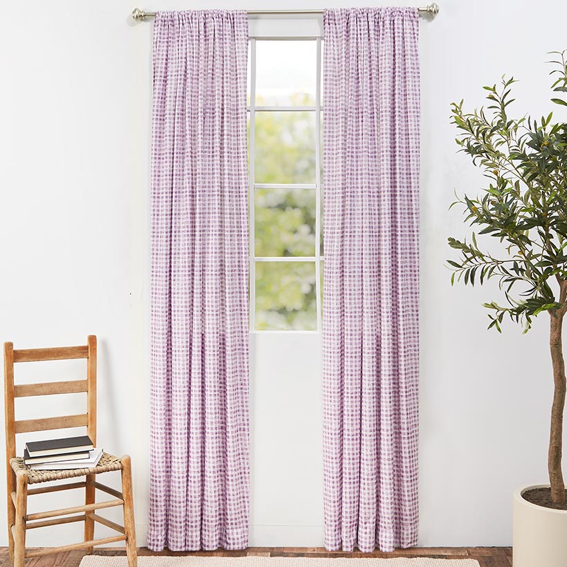 Give any room some color with Spring Gnome Check Window Panel 50″ x 63″ or 50″ x 84″. The purple-and-white check pattern coordinates with our Gnome Burst bedding to create a themed look. Easy to hang with a rod pocket.