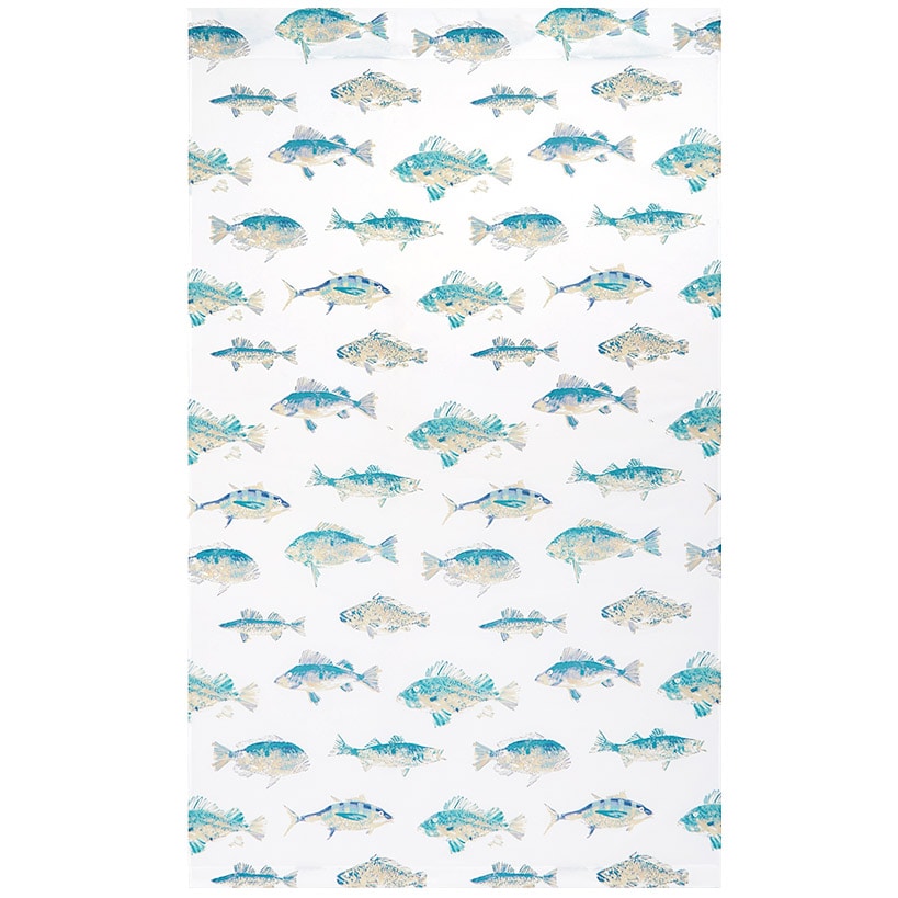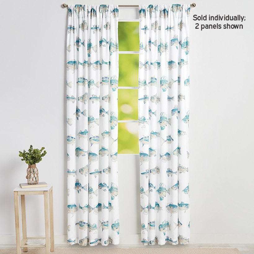 Decorate a window in the colors of the sea with a Tisa Fish Window Panel 50″ x 63″ or 50″ x 84″. Blue and green fish calmly swim across this soothing design. Rod pocket for easy hanging.