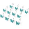 Coordinate your bathroom with this Valentina Bath Collection. Shower curtain and valance feature butterflies, blue birds and flowers on a pale yellow background. Hang the Shower Curtain with the Set of 12 Hooks, shaped like butterflies.